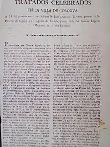 | Ratificação | Agustín de Iturbide, Regente do Império Mexicano Juan O'Donojú, Alto chefe político do governo espanhol no México |