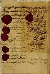 - Artigo 10 - Rescisão deste Acordo assinado por N. Hartingh, W. van Ossenberch, J.J. Steenmulder, C. Donkel e W. Fockens da Companhia Holandesa das Índias Orientais.
