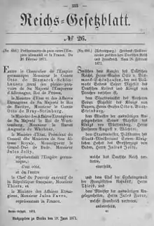 Enquanto o governo francês se deteriorou, Otto von Bismarck conseguiu concretizar a unificação da Alemanha em 18 de janeiro de 1871. O rei Guilherme I da Prússia foi declarado Kaiser do recém-criado Império Alemão na Galeria dos Espelhos do Palácio de Versalhes. A nova estrutura de comando alemã pretendia assinar um tratado de paz para ficar com as possessões coloniais francesas; no entanto, Bismarck optou por tréguas imediatas pois a sua primeira razão para a guerra, a unificação alemã, já tinha sido alcançada. Ele estava preocupado com o facto de um aumento de violência resultasse em mais baixas alemãs, e acentuasse o ressentimento francês. Bismarck também estava preocupado em não chamar a atenção às outras nações europeias, pois temia que eles se unissem para intervir caso o novo estado alemão mostrasse uma grande vontade de poder. Ambos os lados ansiavam por assinar um tratado no início de Fevereiro de 1871.
