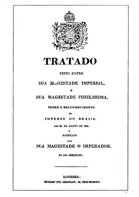 O tratado foi mediado pelo monarca do Reino Unido, que tinha evidente interesse na independência brasileira, e que informalmente já reconhecia a independência do Brasil antes deste tratado, mas queria conseguir da nova nação a economia do tráfico de escravos. Isso acabou retardando a elaboração e assinatura do Tratado do Rio de Janeiro, que como seu nome indica foi assinado na cidade do Rio de Janeiro.