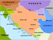 Em 21 de abril de 1941, tendo atrasado o anúncio da cessão da Dalmácia, o ministro das Relações Exteriores da Alemanha nazista, Joachim von Ribbentrop, expressou seu apoio para a inclusão da Bósnia e Herzegovina no novo estado croata e "porções substanciais" da Dalmácia.[2] As negociações subsequentes, em que o governo de Pavelić solicitou continuamente o apoio alemão para contrariar as ambições da Itália, incluíram o pedido croata para incluir no seu território toda a Dalmácia, Split (em italiano: Spalato), Dubrovnik (em italiano: Ragusa) e várias ilhas do Adriático.[2]