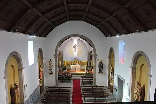 Esta igreja foi danificada por um incêndio em julho de 1973, tendo sido reconstruída em 11 meses. É uma igreja moderna, em granito polido e mármore. A parede frontal da capela-mor é em mármore cinzento e acastanhado, num desenho que pensamos que seja alusivo ao despontar do Sol. Ao centro, Cristo Crucificado; aos pés da Cruz, está um altar em granito polido, de linhas muito modernas, com um sacrário moderno também. À direita, encontra-se S. Tomé – o padroeiro – de madeira (1.70). À esquerda, Santo António, igualmente em madeira (1.70). O altar «Versus populo» é também em granito polido. À direita deste altar, há uma antiga pia baptismal em granito lavrado. Junto desta pia batismal, encontra-se uma pedra arredondada, destinada à colocação de uma vela, que arde, como é costume, durante a cerimónia do batismo. Na parede lateral direita, acima da pia baptismal, há, em azulejos, uma representação do baptismo de Cristo, tendo a data de 1974. Um arco cruzeiro separa a Capela – Mor do corpo da Igreja. Junto ao arco cruzeiro, encostadas à parede, há duas colunas de granito polido com as seguintes imagens: À direita, o mártir S. Sebastião, em madeira (1,50) e à esquerda S. Bento, em madeira (1,50). No corpo da Igreja, há quatro altares, todos iguais. São formados por um arco em pedra que encosta à parede, ao qual se segue cimento rosa. As imagens assentam em mísulas de pedra. A pedra do altar está apoiada em duas colunas também em pedra. Estes altares têm as seguintes imagens: À direita, o Sagrado Coração de Jesus, em madeira (1,70) e santa Teresinha, em madeira (1,70). À esquerda, Nossa Senhora de Fátima, em madeira (1.50) e S. José com o Menino, também em madeira, medindo respetivamente, (1,77 e 1,00). Todas estas imagens são modernas. Datam da restauração da Igreja. O teto é em cachetone, de castanho. Toda a possui um lambrim em azulejo. Há cinco pias de água benta, antigas, em granito lavrado, duas à entrada da porta principal e uma à entrada de cada porta lateral. O coro é amplo, de cimento, tendo escadas de acesso, também em cimento, que partem do corpo da Igreja. A grade do coro é em madeira trabalhada. Nas paredes, há uma via-sacra, em madeira. A Igreja tem vitrais, modernos, com desenhos futuristas. No fundo da Igreja, à esquerda, na dependência onde antigamente estava a pia baptismal, aparecem as seguintes imagens, colocadas em mísulas de madeira: O Menino Jesus, de madeira (0,43); Santa Luzia, em madeira (0,70): S. Tomé - uma bela e antiga imagem, que figurava na Igreja antes das obras de restauro, em madeira (0,75 m); S. Brás, de madeira (0.48) e Santo Amaro, de madeira (0.55). São imagens preciosas.