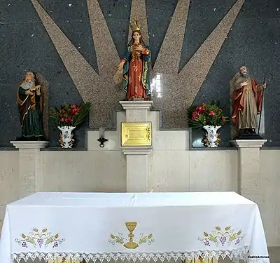 Há, aqui, um lambrim de azulejo antigo e uma pia lavabo, cujo depósito é encimado por uma cruz com ornamentos, algo diferente das encontradas noutras igrejas.