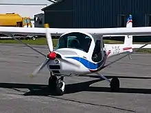 O trem de pouso triciclo é essencialmente o inverso do trem de pouso convencional. No solo, a aeronave triciclo possui uma vantagem na visibilidade do piloto, pois o nariz está no nível da aeronave, diferente da aeronave com trem de pouso convencional, na qual o nariz bloqueia a visão a frente. As aeronaves são muito menos propensas a pilonar (capotar para frente),[nota 1] como pode ocorrer se uma aeronave convencional passar por um desnível ou se os freios forem demasiadamente aplicados. Em uma pilonagem, a cauda da aeronave sobe e a hélice atinge o solo, causando danos à aeronave. O estilo triciclo reduz a possibilidade da aeronave perder o controle direcional, pois o trem de pouso principal fica atrás do centro de gravidade. Entretanto, este estilo é mais suscetível a um efeito chamado Wheel-barrowing, onde a maior parte de peso da aeronave é transferida das rodas principais para a roda do nariz, fazendo com que a aeronave fique direcionalmente instável. Este efeito é causado quando se aplica pressão excessiva nos comandos de voo para "picar" a aeronave. As aeronaves equipadas com roda no nariz são também mais fáceis de controlar no solo em condições de vento forte devido ao ângulo de ataque negativo de sua asa. Os alunos de pilotagem são capazes de manobrar com segurança as aeronaves triciclos com mais facilidade.[2]