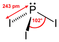 PI3 tem essencialmente momento de dipolo zero em solução no dissulfeto de carbono, porque a ligação P-I tem quase nenhum dipolo. A ligação P-I é também fraca; PI3 é muito menos estável que o PBr3 e o PCl3, com uma entalpia de formação para o PI3 de apenas −46 kJ/ mol (sólido)., frequentemente pela adição de iodo a uma solução de fósforo branco em dissulfeto de carbono:
