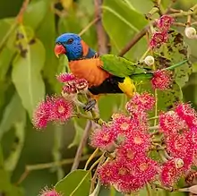 | Lóri-de-pescoço-vermelho em Katherine, Northern Territory | |