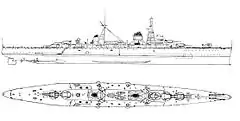 | Armamento | 8 canhões de 203 mm 16 canhões de 100 mm 8 canhões de 40 mm 8 metralhadoras de 12,7 mm 8 tubos de torpedo de 533 mm |