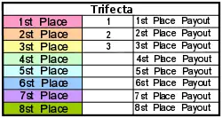 Na corrida de cavalos, uma trifecta é uma única aposta que prevê o primeiro, o segundo e o terceiro lugares, na ordem exata.