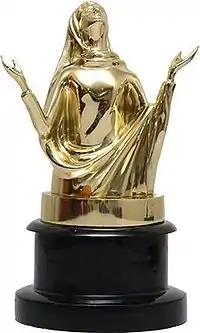 Modesto recriou, então, digitalmente a estatueta de Nossa Senhora tendo como base uma antiga imagem de madeira que existia na Associação do Senhor Jesus. A base do troféu segue o padrão usado no Óscar, com a base na arte conceitual,; assim, finalizado o desenho gráfico, coube a escultora Andrea Anholeto, da empresa Anholeto, recriar a versão em argila que serviu de modelo para as estatuetas de bronze efetivamente entregues aos contemplados pelo Troféu.[3]