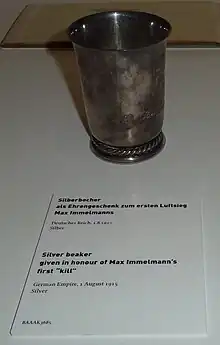 A caneca de prata dada a Max Immelmann está preservada no Museu de História Militar da Bundeswehr, em Dresden.