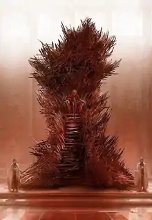 ![]() Ilustração do Trono de Ferro por Marc Simonetti, do livro The World of Ice & Fire (2014) | |