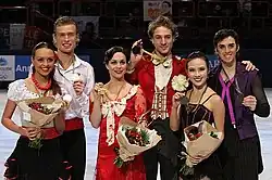 Pódio da competição de dança no gelo.