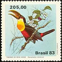 ![]() Tucano-de-bico-verde no Parque Estadual da Cantareira, em São Paulo, no Brasil | |||||||||||||||