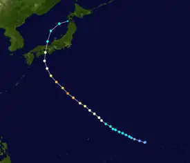 Tufão Cimaron no pico da intensidade perto de Iwo To em 22 de agosto | |