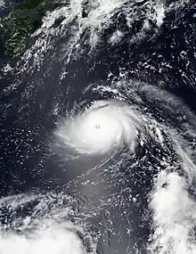 Tuão Hinnamnor no pico máximo secundário a leste de Taiwan em 1 de setembro. | |