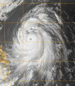 O tufão Rammasun durante seu pico de intensidade a leste das Filipinas, em 11 de Maio | |