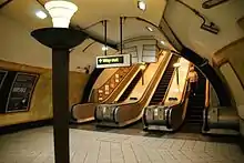 A estação originalmente apresentava um grande padrão de lâmpada e sinal no espaço em frente à estação que fazia parte do design original de Holden, mas isso foi removido desde então.[2]