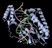 - Kamada, K.; Horiuchi, T.; Ohsumi, K.; Shimamoto, N.; Morikawa, K. (1996). «Structure of a replication-terminator protein complexed with DNA». Nature. 383 (6601): 598–603. Bibcode:1996Natur.383..598K. PMID 8857533. doi:10.1038/383598a0