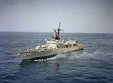 O Brumby foi construído no início dos anos 1960, e lançado ao mar em 6 de junho de 1964 sendo comissionado no ano seguinte, permaneceu a serviço da Marinha dos Estados Unidos no período de 1965 a 1988. Foi emprestado para a Marinha do Paquistão aonde recebeu o nome de Harbah (F-266). O navio foi devolvido aos Estados Unidos em 1994, após a recusa do Paquistão de não interromper o seu programa de desenvolvimento de armas nucleares. A fragata foi desmontada no mesmo ano.[3]