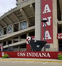 - Nowling, Lacy; Decamp, Ben (8 de setembro de 2013). «USS Indiana Dedicated At Memorial Stadium». Indiana Public Media. Consultado em 27 de janeiro de 2023. Arquivado do original em 18 de abril de 2018