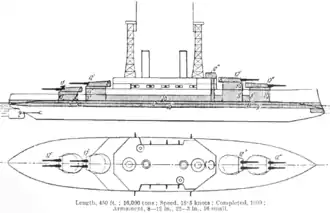 | Armamento | 8 canhões de 305 mm 22 canhões de 76 mm 2 canhões de 47 mm 8 canhões de 37 mm 2 tubos de torpedo de 533 mm |