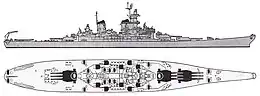 | Armamento | 9 canhões de 406 mm 20 canhões de 127 mm 80 canhões de 40 mm 49 canhões de 20 mm |