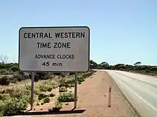 Assine na rodovia Eyre indicando o início do fuso horário não oficial do centro-oeste australiano