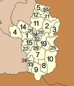 A província está subdividida em 20 distritos (amphoes) e 5 distritos menores (king Amphoes). Os distritos estão por sua vez divididos em 219 comunas (tambons) e estas em 2.469 povoados (moobans). Os números faltantes abaixo são os distritos que formaram a província de Amnat Charoen em 1993.