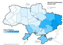 Nas eleições parlamentares de 2006, o status da língua russa na Ucrânia foi retomado pelos partidos da oposição. O principal partido da oposição, o Partido das Regiões, prometeu introduzir dois idiomas oficiais, russo e ucraniano, nos níveis nacional e regional.[31] No nível nacional, tais mudanças exigem a modificação do artigo 10 da Constituição da Ucrânia, que o partido espera alcançar.[32] Antes da eleição em Kharkiv, e após a eleição em outras regiões do sudeste, como Donetsk, Dnipropetrovsk, Luhansk, Mykolaiv e Crimeia, os conselhos locais recém-eleitos, vencidos pelo Partido das Regiões (e pequenos partidos de apoio), declarou o russo como língua regional, citando a Carta Europeia das Línguas Regionais ou Minoritárias, ratificada pela Ucrânia em 2003.[33] O governo central questionou essas ações dos conselhos locais, alegando que eles excederam sua autoridade.[34] Em Dnipropetrovsk, o tribunal considerou ilegal a ordem do conselho da cidade de introduzir o russo como idioma regional[35] mas a batalha legal sobre o status local do idioma russo ainda precisa ser resolvida.[36]