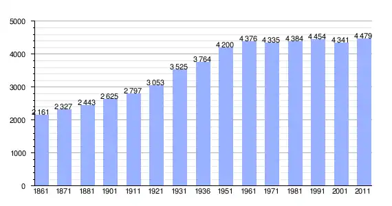 | Variação demográfica do município entre 1861 e 2011[3] |