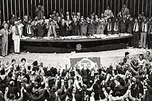 Ulysses Silveira Guimarães GCC • GCIH (Rio Claro, 6 de outubro de 1916 – Angra dos Reis, 12 de outubro de 1992) foi um político e advogado brasileiro, um dos principais opositores à ditadura militar. Foi o presidente da Assembleia Nacional Constituinte de 1987–1988, que inaugurou a nova ordem democrática, após 21 anos sob a ditadura militar. Ulysses nasceu na vila de Itaqueri da Serra, atual distrito do município de Itirapina, que à época era parte do município de Rio Claro no interior do estado de São Paulo.[1]