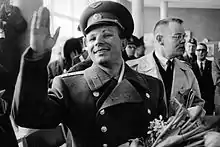 Um processo de desestalinização seguiu-se após a morte de Stalin, começando uma era de abertura política e social. Em seguida, a URSS passou a iniciar vários dos mais significativos avanços tecnológicos do século XX, incluindo o lançamento do primeiro satélite artificial e do primeiro voo espacial de um ser humano na história, fatores que criaram a corrida espacial. A crise dos mísseis de Cuba em 1962 marcou um período de extrema tensão entre as duas superpotências, o que foi considerado o mais próximo de um confronto nuclear mútuo. Na década de 1970, houve um relaxamento das relações internacionais, mas as tensões políticas foram retomadas com a invasão soviética do Afeganistão em 1979. A ocupação drenou recursos econômicos e arrastou-se sem alcançar resultados políticos significativos.[14][15]