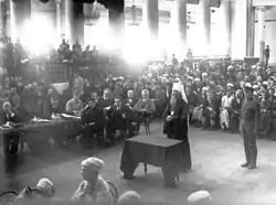 Este quadro político-social foi profundamente alterado pela deflagração da Primeira Guerra Mundial. A Revolução de Fevereiro de 1917 caracterizou a primeira fase da Revolução Russa. A consequência imediata foi a abdicação do czar Nicolau II. Ela ocorreu como resultado da insatisfação popular com a autocracia czarista e com a participação negativa do país na Primeira Guerra Mundial. Ela levou à transferência de poder do czar para um regime republicano, surgido da aliança entre liberais e socialistas que pretendiam conduzir reformas políticas.[25]