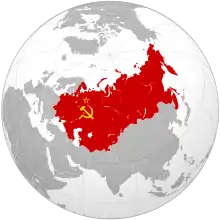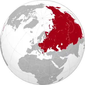No início da Segunda Guerra Mundial, a União Soviética assinou um pacto de não agressão com a Alemanha nazista, inicialmente para evitar um confronto, mas o tratado foi desconsiderado em 1941, quando os nazistas invadiram o território da URSS e deram início ao maior e mais sangrento teatro de guerra da história. As perdas soviéticas durante a guerra foram proporcionalmente as maiores do conflito, devido ao custo para adquirir vantagem sobre as forças das Potências do Eixo em batalhas intensas, como a de Stalingrado, que conduziram os soviéticos pela Europa Oriental até a captura de Berlim em 1945, infligindo a grande maioria das perdas alemãs durante a guerra.[13] Os territórios que a URSS conquistou das forças do Eixo na Europa Central e Oriental posteriormente se tornaram os Estados satélites do Bloco Oriental. Diferenças ideológicas e políticas com os seus homólogos do Bloco Ocidental, que era liderado pelos Estados Unidos, levou à formação de diversos pactos econômicos e militares que culminaram no longo período da Guerra Fria.