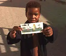 ![]() População somali observa um CH-53 Sea Stallion estadunidense entregar uma carga de trigo doada pela Austrália | |||