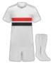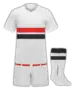 O conjunto foi confeccionado na loja Esportes Moura, pelo conselheiro Mourinha. Inicialmente, o calção tinha detalhes em vermelho enquanto os meiões eram pretos com faixas brancas. Posteriormente, esses detalhes foram excluídos e o conjunto passou a ser totalmente branco.[1] Em 1983, o uniforme passou a ter a faixa branca mais estreita deixando, dessa maneira, as faixas vermelha e preta mais próximas. A proporção da distância entre as faixas continua a mesma até os dias atuais.[2]