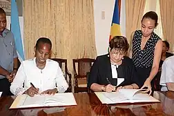 - Philo, Madiha; Bonnelame, Betymie (16 de setembro de 2015). «20 Seychellois Teachers to Train in Botswana under New Agreement». Seychelles News Agency (em inglês). Victoria, Seychelles. Consultado em 30 de abril de 2023. Cópia arquivada em 4 de março de 2016