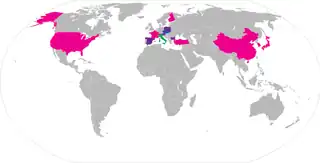 | País | Cidade | Início | Término | Obrig. | Opc. | ||||