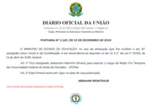 - Diário Oficial da União. Nº 239, seção 2, página 19. Edição de quarta-feira, 11 de dezembro de 2019. ISSN 1677-7050