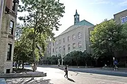 ![]() Parte externa do Salão Kerr, no campus da universidade. | |