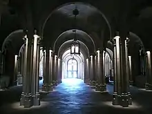 A natureza inadequada dessas instalações logo gerou a necessidade de construir uma casa maior para a Universidade, e em 1863, começaram as obras no novo prédio de Elies Rogent, embora só fosse totalmente concluído em 1882. Sua construção teve grandes repercussões para a cidade, pois foi um dos primeiros edifícios a serem erguidos fora das antigas muralhas da cidade. O trabalho no prédio durou mais de vinte anos, embora em 1871 as primeiras palestras já estivessem sendo ministradas lá. O relógio e o sino de ferro alojados na torre do Pati de Lletres - o "Pátio das Artes" - foram instalados em 1881. Complementando o trabalho de construção, esculturas e pinturas foram encomendadas diretamente de artistas renomados ou premiadas em competições abertas.[8]