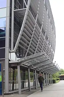 O Edifício Devonshire, inaugurado em 2004, incorpora um projeto com eficiência energética. Ele usa células fotovoltaicas para ajudar a alimentar persianas motorizadas que controlam a temperatura do edifício e serpentinas de aquecimento geotérmico. Seus arquitetos ganharam prêmios no Hadrian Awards e no RICS Building of the Year Award 2004. A universidade ganhou um prêmio Green Gown por sua construção.[29][30][31]