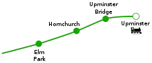 A London, Tilbury and Southend Railway de Londres Fenchurch Street e Barking foi construída através da área da Ponte Upminster em 1885, com estações em Hornchurch e Upminster.[3] A Whitechapel and Bow Railway foi inaugurada em 1902 e permitiu que os serviços da District Railway operassem para Upminster. A Metropolitan District foi convertida em trens elétricos em 1905 e os serviços foram cortados para East Ham. Atrasados pela Primeira Guerra Mundial,[3] trilhos eletrificados foram estendidos pela London, Midland and Scottish Railway até Upminster e os serviços diretos foram retomados em 1932.[4][5] A District Railway foi incorporada à London Transport em 1933 e ficou conhecida como District line.