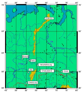 O Ural (em russo: Урал) é uma região geográfica localizada ao redor dos Montes Urais, entre as planícies do leste europeu e oeste da Sibéria. Considera-se uma parte da estepe euro-asiática, estendendo-se aproximadamente do norte ao sul; do Oceano Árctico até o fim do Rio Ural, perto da cidade de Orsk. A fronteira entre a Europa e a Ásia corre ao longo do lado oriental dos Montes Urais.[1] Ural reside principalmente dentro da Rússia, mas também inclui uma parte do noroeste do Cazaquistão. Esta é uma entidade histórica, não uma entidade oficial, com os limites que se sobrepõem a suas regiões vizinhas do Volga e da Sibéria Oriental. Em algum momento no passado, partes da região Ural atualmente existente foram consideradas uma porta de entrada para a Sibéria, se não a própria Sibéria, ou foram combinadas com as divisões administrativas do Volga. Hoje, existem duas entidades oficiais, o Distrito Federal dos Urais e a Região Econômica dos Urais. Enquanto o segundo segue as fronteiras históricas, o primeiro é um produto político; o distrito omite os Urais Ocidentais e inclui a Sibéria Ocidental. O centro histórico dos Urais é Cherdyn, hoje em dia é a pequena cidade de Perm Krai. Perm era um centro administrativo da Guberniya com o mesmo nome em 1797. O mais território do Ural histórico e moderno foi incluído em Perm Guberniya. O centro administrativo dos Urais foi transferido para Sverdlovsk (atualmente Yekaterinburg) depois da Revolução e da Guerra Civil. Atualmente, a região econômica dos Urais não possui capital administrativo e informal, enquanto Yekaterinburg é o centro administrativo do Distrito Federal do Ural.[2]