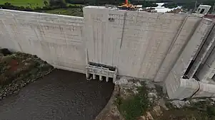 A barragem da usina é feita de concreto compactado a rolo (CCR) com uma face vertical a montante. A usina tem 62 quilômetros quadrados e uma barragem de 67,75 metros de altura. Os três geradores fornecidos pela empresa WEG pesam 285 toneladas cada e têm aproximadamente oito metros de diâmetro. À jusante da tomada de água existem três condutos forçados, um para cada unidade, com comprimento médio de 55 m, com duas curvas verticais em cada conduto forçado, e sem curvas horizontais.