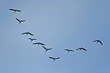 Uma teoria sobre a migração de aves afirma que muitas das maiores espécies de pássaros voam numa formação em V para que todos, menos o pássaro líder, possam aproveitar os filetes ascendentes de ar dos vórtices de ponta de asa do pássaro à frente.[5][6]