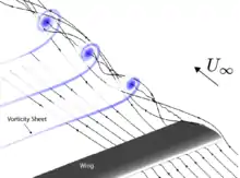 A sustentação tridimensional e a ocorrência de vórtices de ponta de asa podem ser abordados pelo conceito de "horseshoe vortex" e descritos precisamente na teoria de Lanchester-Prandtl. Nessa abordagem, os vórtices de bordo de fuga são uma continuação dos vórtices de beira de asa inerentes à geração de sustentação.