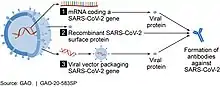Em estudos de fase III de desenvolvimento, várias vacinas contra a COVID-19 demonstraram eficácia de até 95% na prevenção de infecções sintomáticas da doença.[lower-alpha 1] Em março de 2021, 12 vacinas foram autorizadas por pelo menos uma autoridade reguladora nacional para uso público: duas vacinas de RNA (a Pfizer–BioNTech e a Moderna), quatro inativadas convencionais (BBIBP-CorV, CoronaVac, Covaxin e CoviVac), quatro de vetor viral (Sputnik V, a Oxford–AstraZeneca, a Convidecia e a Janssen da Johnson & Johnson) e duas de subunidade proteica (EpiVacCorona e RBD-Dimer). No total, em março de 2021, 308 vacinas candidatas estavam em vários estágios de desenvolvimento, com 73 em pesquisa clínica, incluindo 24 em testes de fase I, 33 em testes de fase II e 16 na fase III.[2]