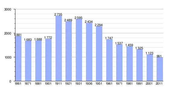 | Variação demográfica do município entre 1861 e 2011[3] |