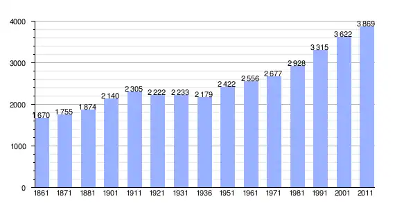 | Variação demográfica do município entre 1861 e 2011[3] |